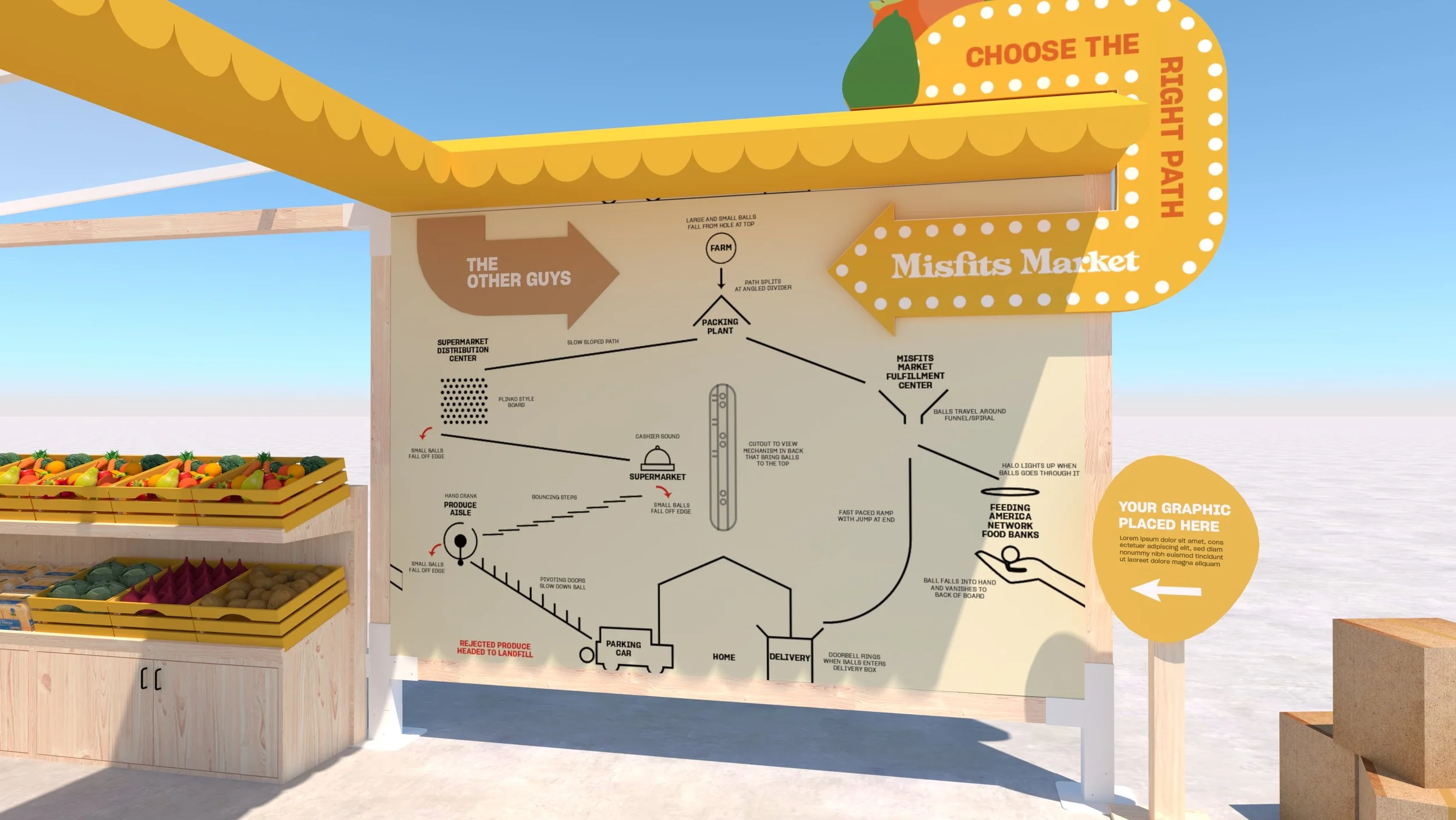 Misfits Markets wanted to get more information out in the community about what they do. So they teamed up with us at Street Factory Media to design, produce and fabricate a pop-up Misfits Market market.