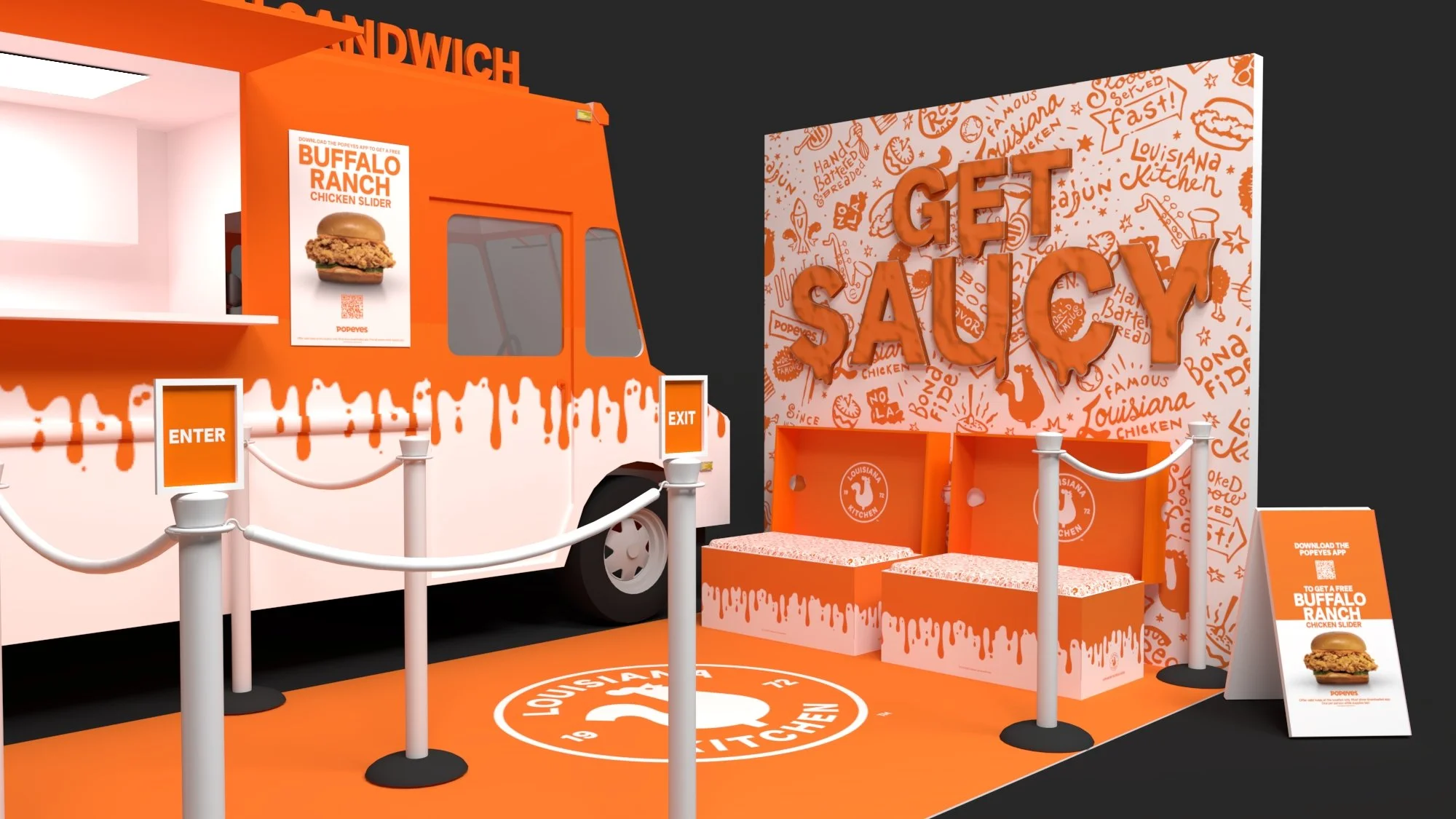 Popeyes sampled their new Buffalo Ranch Chicken Sandwich at one of the premier food conventions in the US - Eatscon. To highlight they saucy nature of their new sandwich the teamed up with Gut and Street Factory Media.